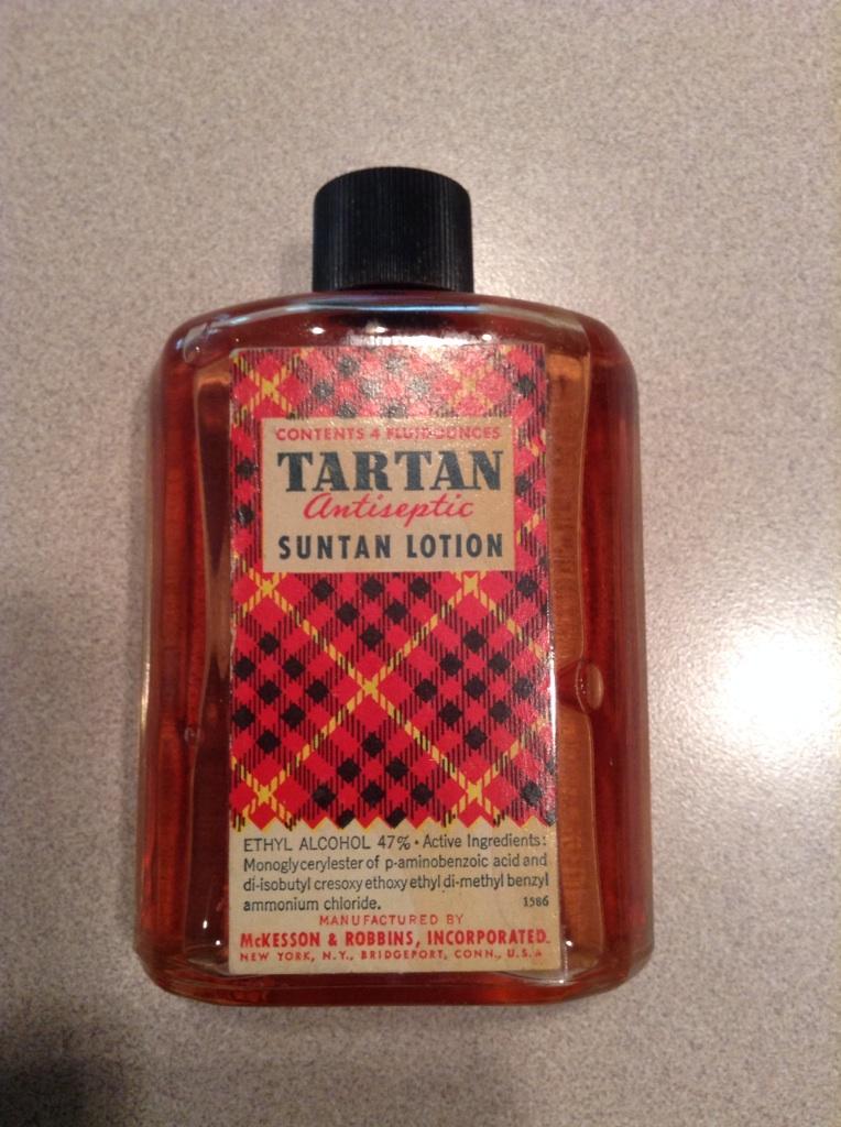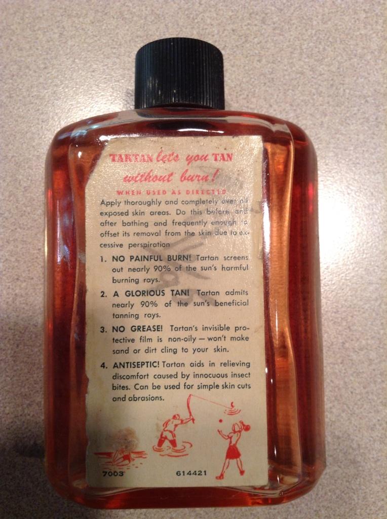 So, want to see suntan lotion from about 1950? Here you go: